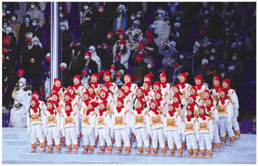 ▲2月4日,北京冬奥会开幕式上,马兰花合唱团的孩子们用希腊语献唱。