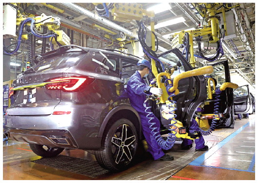 上海自贸区临港新片区里,上汽集团临港乘用车工厂内热火朝天,一辆辆整车正从这里下线,走向中国居民乃至全球居民的家中。记者在总装车间看到,有的工人正在运送物料,有的安装电子元件,还有的正在进行灯光、淋雨、雷达等各方面出厂前质检。这里不仅有非凡、荣威、名爵等品牌的车型,还有新面世的“智己L7”的身影。