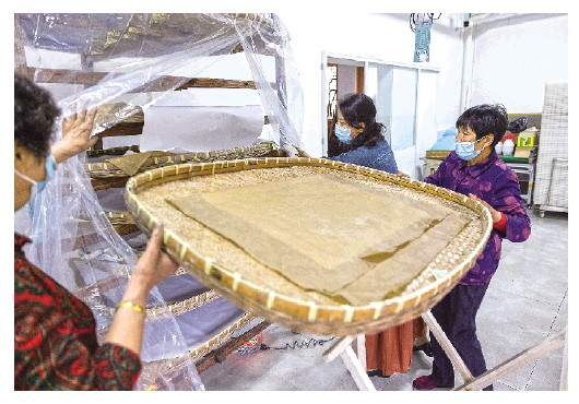 ▲4月26日,在湖州市南浔区菱湖镇射中村,养蚕农户在蚕种外围铺匀焦糠层,以保护新孵化出的蚕宝宝,并保持蚕室干燥。 |