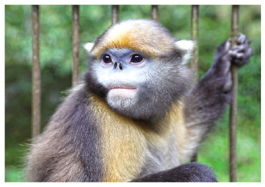 这是在贵州梵净山国家级自然保护区管理局野生动物救护中心拍摄的黔金丝猴(3月21日摄)。