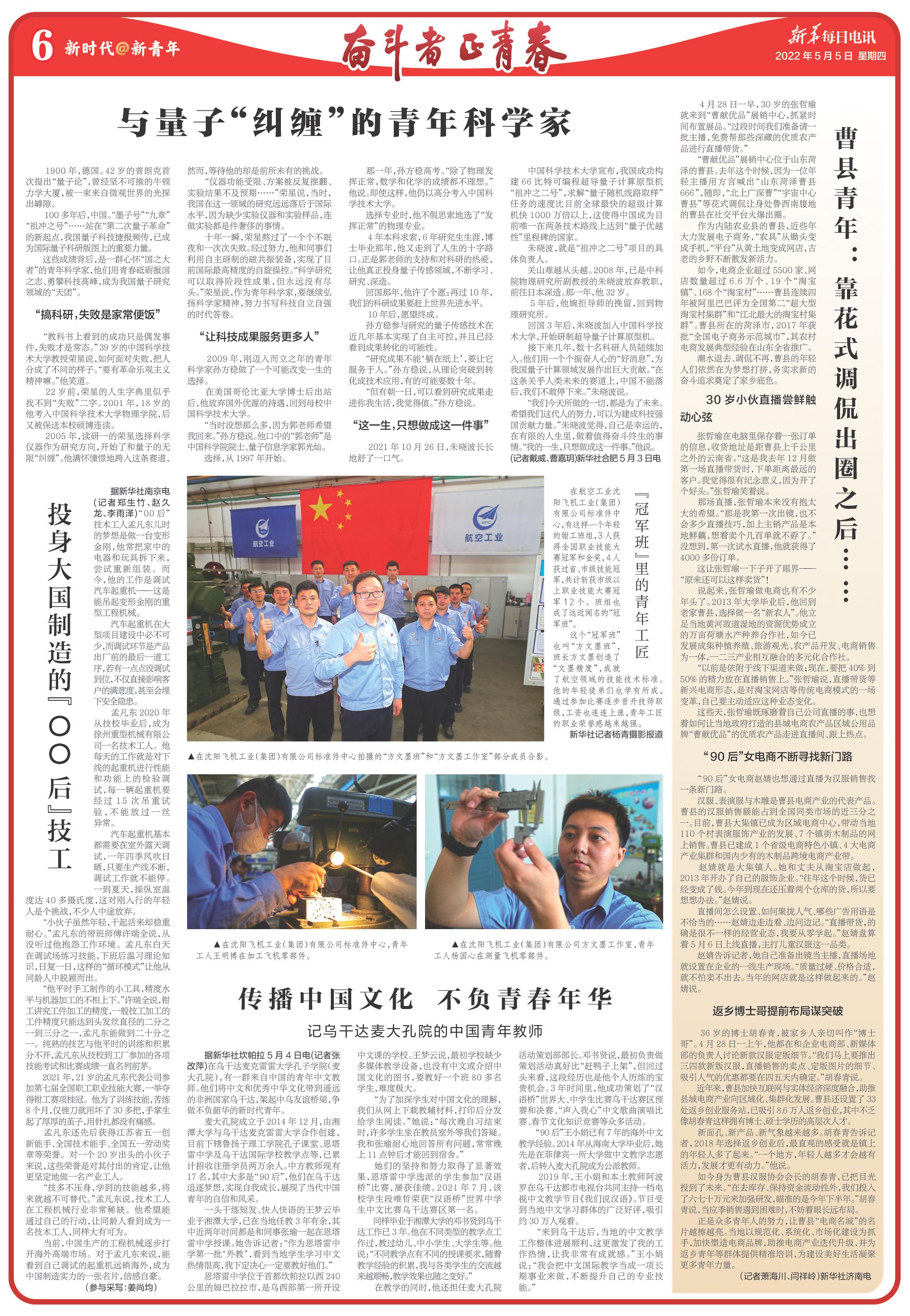 | ( 2022-05-05 ) 稿件来源:新华每日电讯 奋斗者正青春 |