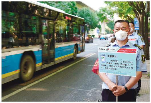 根据北京市疫情防控需要,为做好精细精准防控,自2022年5月17日首班车起,北京市疫情防控封控区、管控区周边的190条地面公交线路重点车站和54座地铁车站,查验乘客健康码上车。 新华社记者