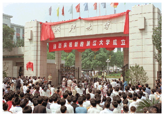 ▲1998年9月15日,由原浙江大学、杭州大学、浙江农业大学、浙江医科大学合并组建而成的新浙江大学在杭州成立。      (新华社记者王定昶摄)