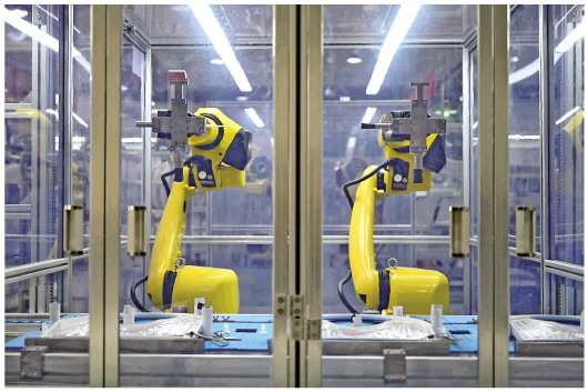 ▲5月18日,在福建省南安市九牧高端灯塔工厂,机械臂在流水线上作业。位于福建省南安市的九牧高端灯塔工厂以智能马桶生产为主,车间所有机械设备均由5G应用控制,实现产线人机协同,生产效率提高了26%;同时,经过数字化转型的智能车间还可通过“动态数据库”对员工的核酸检测信息、健康码、行程码、疫苗接种情况实行动态监管,提高了工厂科学精准防控疫情的水平,为企业复工复产按下“加速键”。