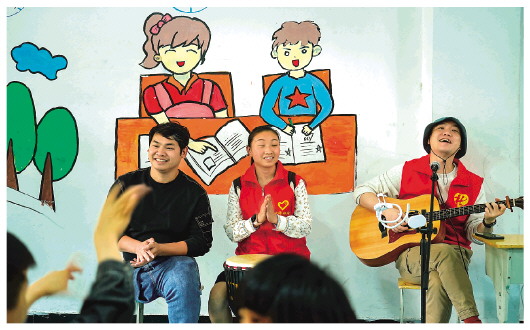 5月13日,贾君婷仙(中)和丈夫到萍乡市一处孤独症儿童康复机构做义工。