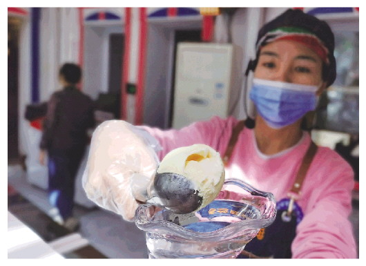 “慕名已久,终于尝到了,冰激凌很有特色,回去一定推荐朋友来吃。”广东游客刘俊杰抿了一口撒满果酱和果仁的冰激凌,满足地说。