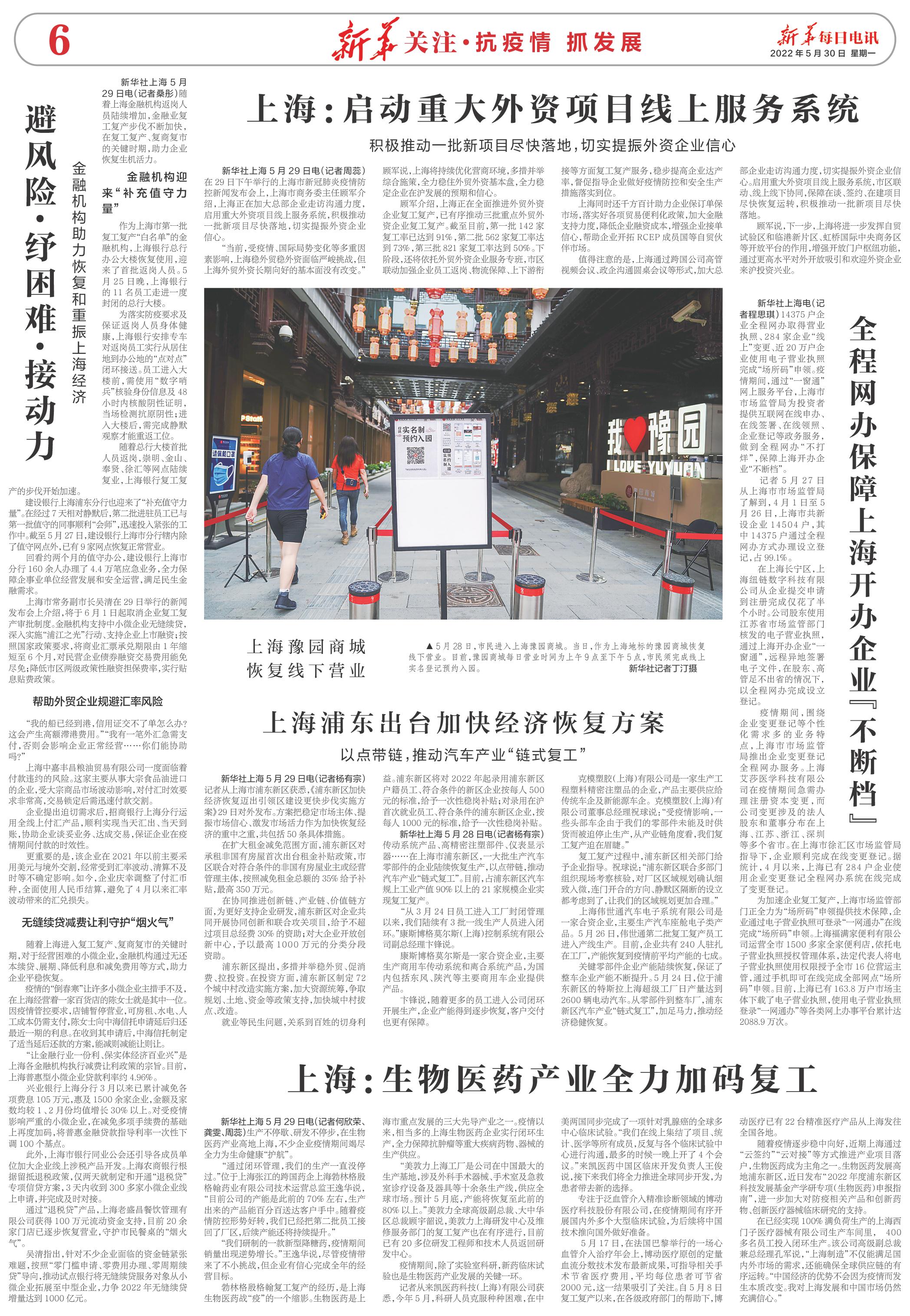 | ( 2022-05-30 ) 稿件来源:新华每日电讯 新华关注·抗疫情 抓发展 |