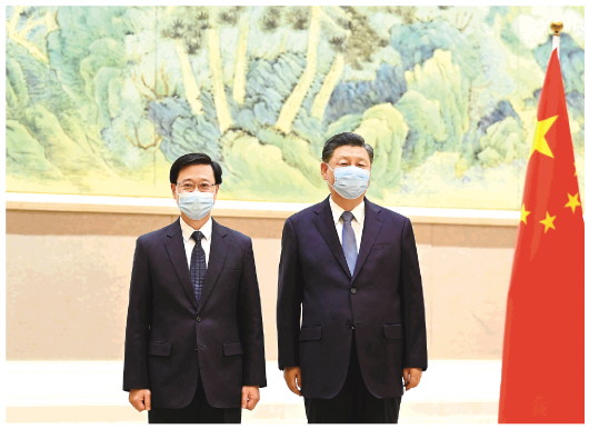 习近平强调,今年适逢香港回归祖国25周年。25年来,尽管经历了许多风雨挑战,但“一国两制”在香港的实践取得了举世公认的成功。中央全面准确贯彻“一国两制”方针的决心从没有动摇,更不会改变。在中央政府、香港特别行政区政府和社会各界的共同努力下,香港已实现由乱到治的重大转折,正处在由治及兴的关键时期。我相信,新一届特别行政区政府施政一定会展现新气象,香港发展一定会谱写新篇章。