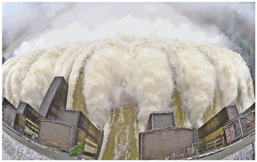 ▲6月13日,福建水口水电站开闸泄洪。 新华社记者林善传摄 |