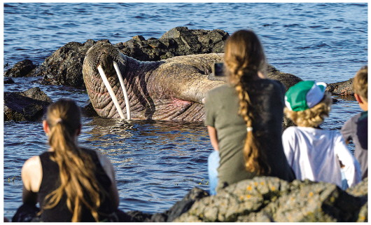 ▲6月11日,人们在瑞典西南部阿里尔德村庄外的海岸边观看海象“斯滕”。这只海象近日在瑞典西海岸出没。 新华社发