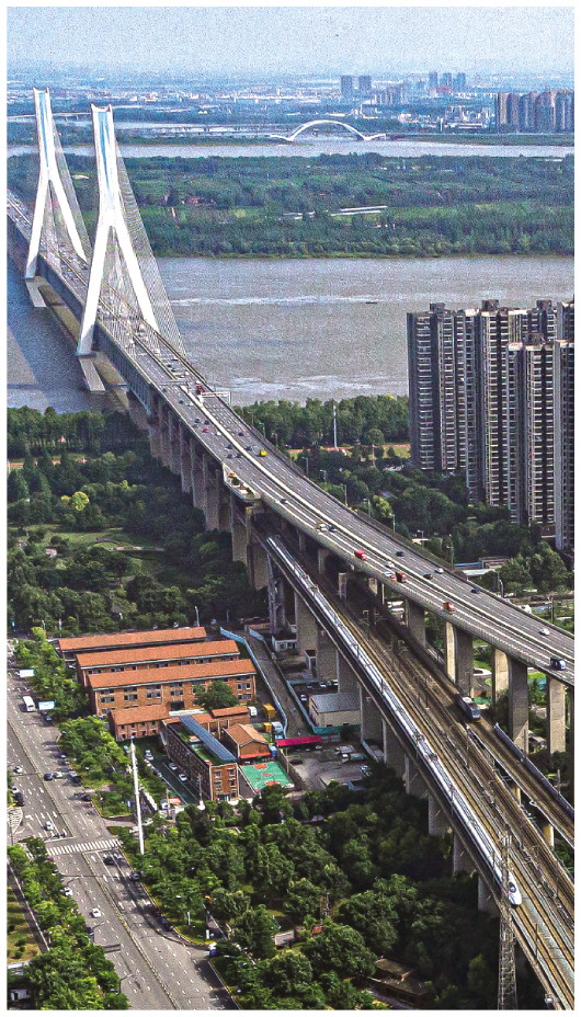 郑渝高铁全长1068公里,途经河南、湖北、重庆三省市,地形地貌复杂多变,环保要求高。其中,赵河镇跨南水北调干渠特大桥位于南水北调中线工程干渠两侧的生态保护区内。施工中,中铁十五局五公司的建设者在悬臂梁浇筑阶段,采用全封闭式挂篮施工工艺,有效避免了工程施工对南水北调干渠水源造成破坏,成功实现160米主跨跨越干渠,保证了干渠输水安全。