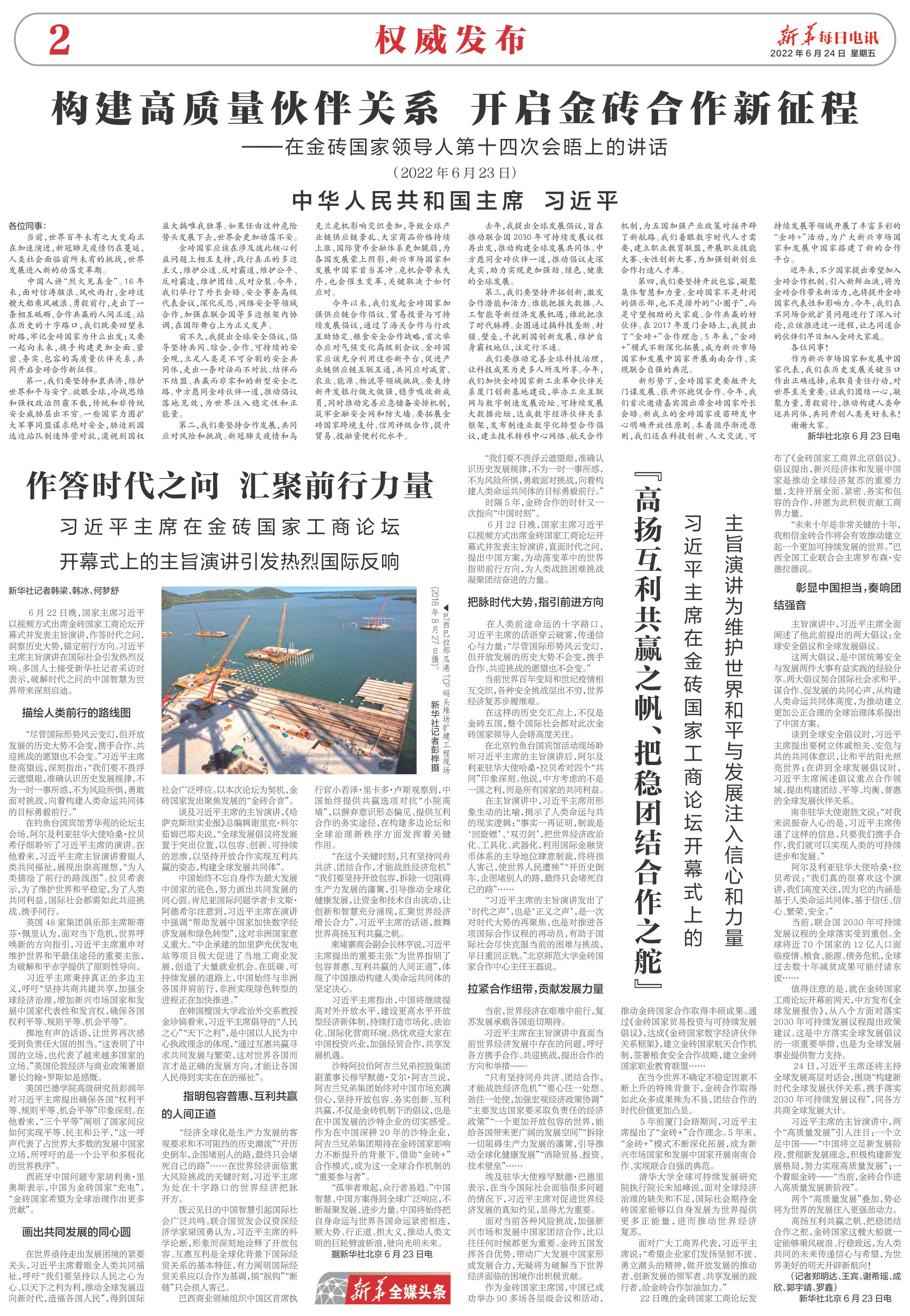 构建高质量伙伴关系 开启金砖合作新征程——在金砖国家领导人第十四次会晤上的讲话(2022年6月23日)中华人民共和国主席 习近平 |