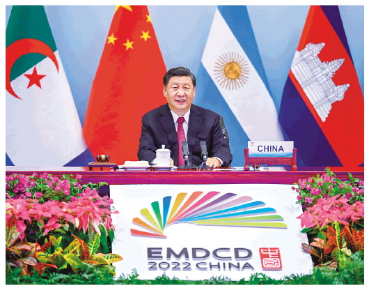 习近平指出,发展是人类社会的永恒主题。只有不断发展,才能实现人民对生活安康、社会安宁的梦想。长期以来,广大发展中国家为探索符合自身国情的发展道路、实现经济社会发展作出了不懈努力,取得令人瞩目的成果。新兴市场国家和发展中国家经济已占全球半壁江山,在科技、教育、社会、文化等领域也取得长足发展。当前,新冠肺炎疫情吞噬全球多年发展成果,联合国2030年可持续发展议程落实进程受阻,南北鸿沟继续拉大,粮食、能源安全出现危机。同时,各国人民求和平、谋发展、促合作的愿望更加强烈,新兴市场国家和发展中国家团结自强的意志更加坚定,新一轮科技革命和产业变革给各国带来的机遇更加广阔。