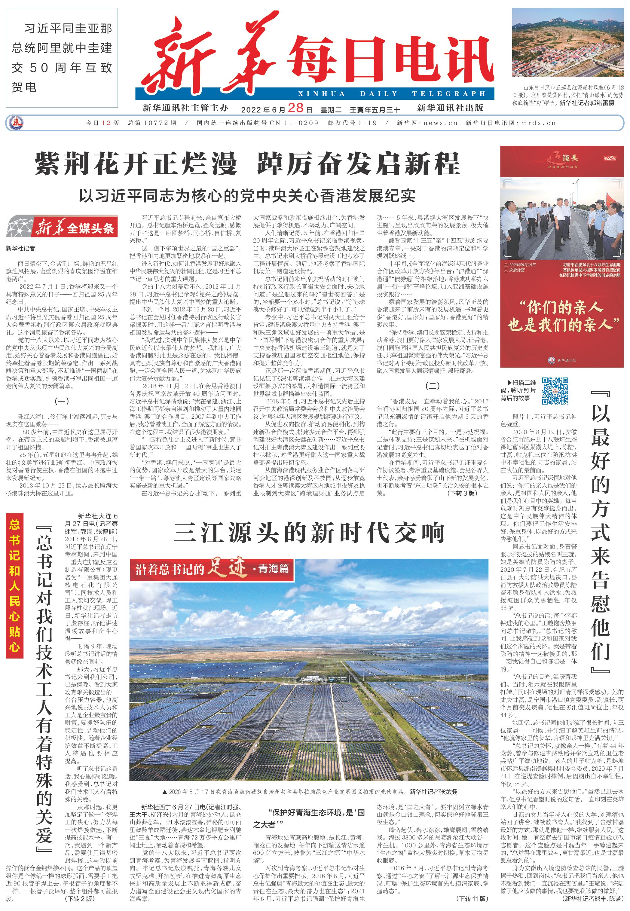| ( 2022-06-28 ) 稿件来源:新华每日电讯 要 闻 |