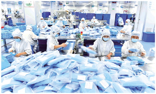 ▲6月26日,山东康力医疗器械科技有限公司工作人员在加工防疫物资。6月27日,国家统计局发布统计信息,2022年1至5月份,全国规模以上工业企业实现利润总额34410.0亿元,同比增长1.0%。 新华社记者郭绪雷摄