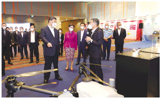 随后,习近平同在港两院院士、科研人员、青年创科企业代表等亲切交谈。他强调,国家高度重视科技创新工作,深入实施创新驱动发展战略。国家已将支持香港建设国际创科中心纳入“十四五”规划,对香港有很高的期望。希望香港发挥自身优势,汇聚全球创新资源,与粤港澳大湾区内地城市珠联璧合,强化产学研创新协同,着力建设全球科技创新高地。香港科技工作者是我国实施创新驱动发展战略、建设创新型国家的一支重要力量。希望大家继续弘扬爱国爱港传统,坚定创新自信,瞄准世界科技前沿,积极对接国家重大战略需求,着力攻克关键核心技术,为把我国建设成为世界科技强国作出贡献。