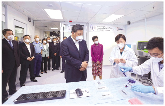 香港科学园是香港最大的科技研发及企业孵化基地,目前拥有1100多家企业和1.7万余名创科从业者,吸引了众多国内外知名科研机构和高校进驻设立实验室。在科学园展厅,习近平听取香港创新科技发展、深港创新科技发展互动、香港科学园发展等情况介绍,观看香港代表性创科企业展示。习近平指出,近年来,在中央支持下,香港发挥自身优势,在基础研究、人才培养、创科产业发展等方面都取得了令人瞩目的成绩。特别行政区政府要把握时代发展大势,把支持创新科技发展放在更加突出的位置,进一步发挥好科技创新的支撑和引领作用。