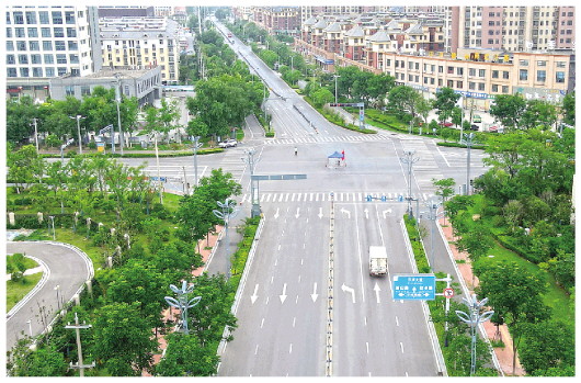 疫情下的泗县街头,偶有车辆来往。当地要求交通干道和保供运输车辆要确保畅通,不得擅自阻断或关闭高速公路和普通公路,不得硬隔离县乡村公路,不得擅自关停高速公路服务区。货运车辆闭环管理,点对点运输。