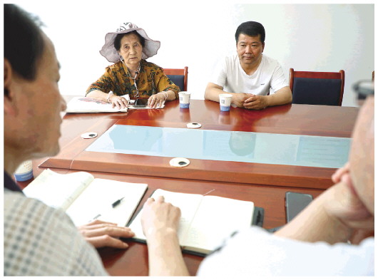 6月30日,在甘肃省定西市陇西县综治中心综合调解室,工作人员向当地居民(左二)和村委会负责人了解相关情况。