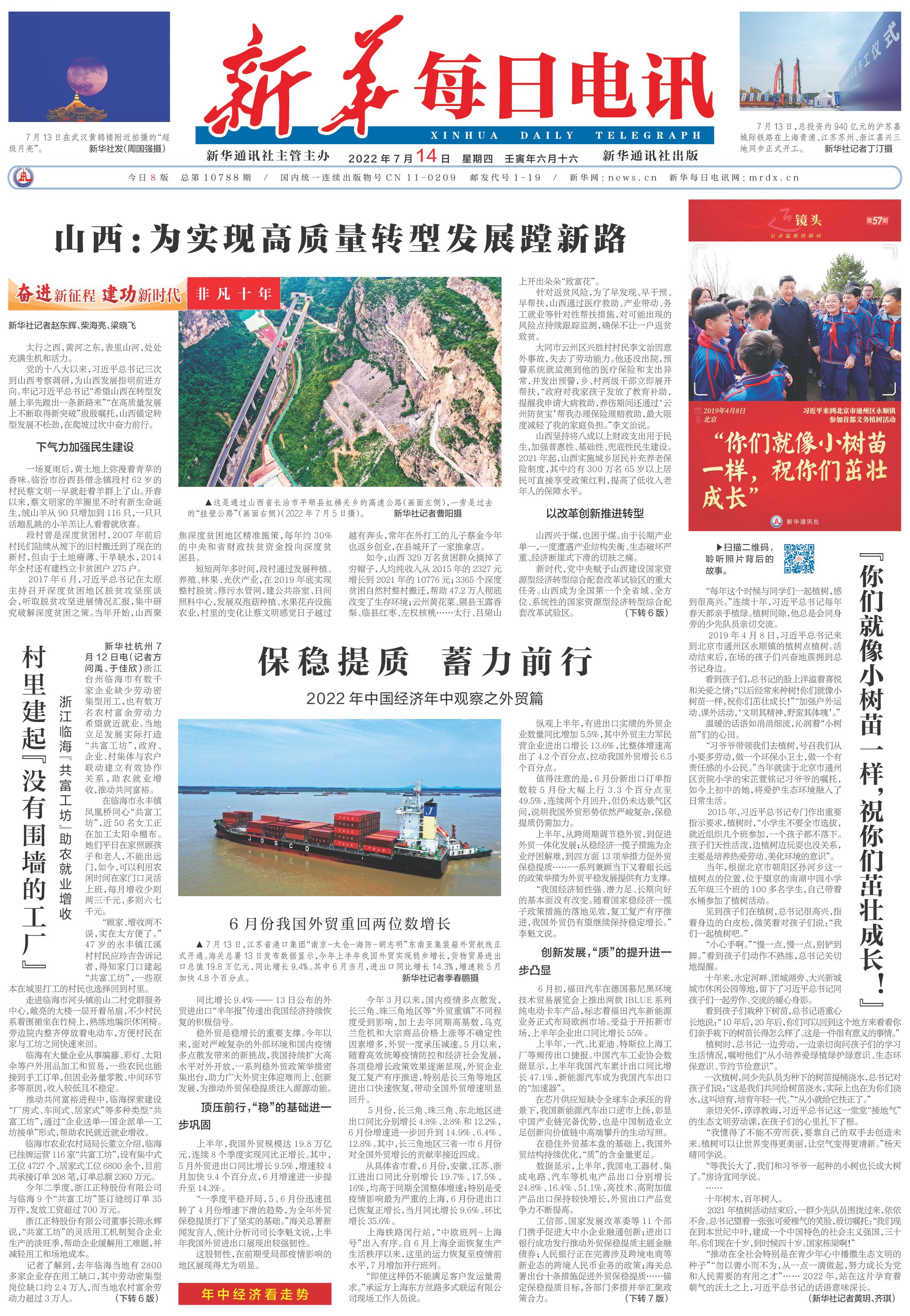 | ( 2022-07-14 ) 稿件来源:新华每日电讯 要 闻 |