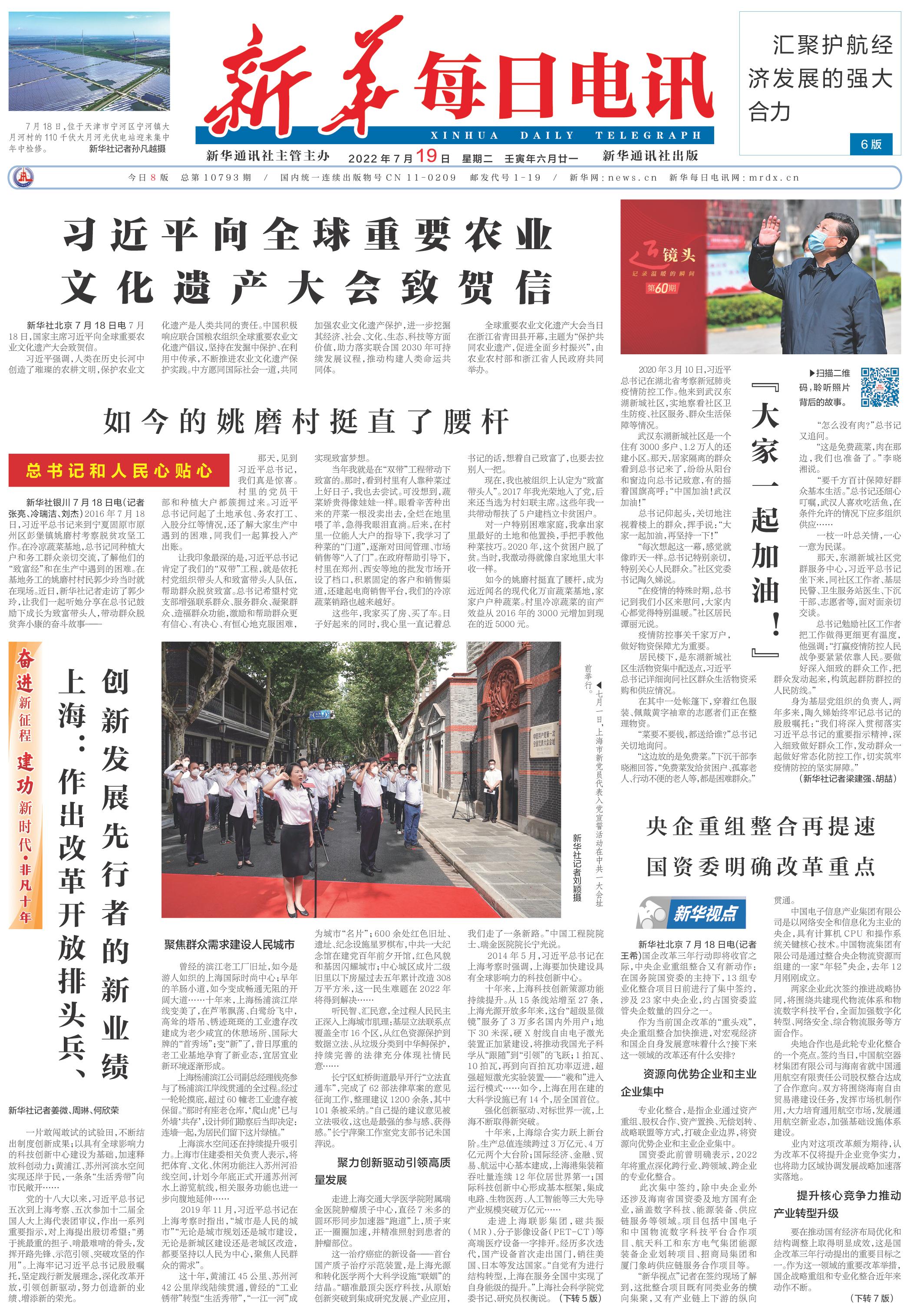 | ( 2022-07-19 ) 稿件来源:新华每日电讯 要 闻 |