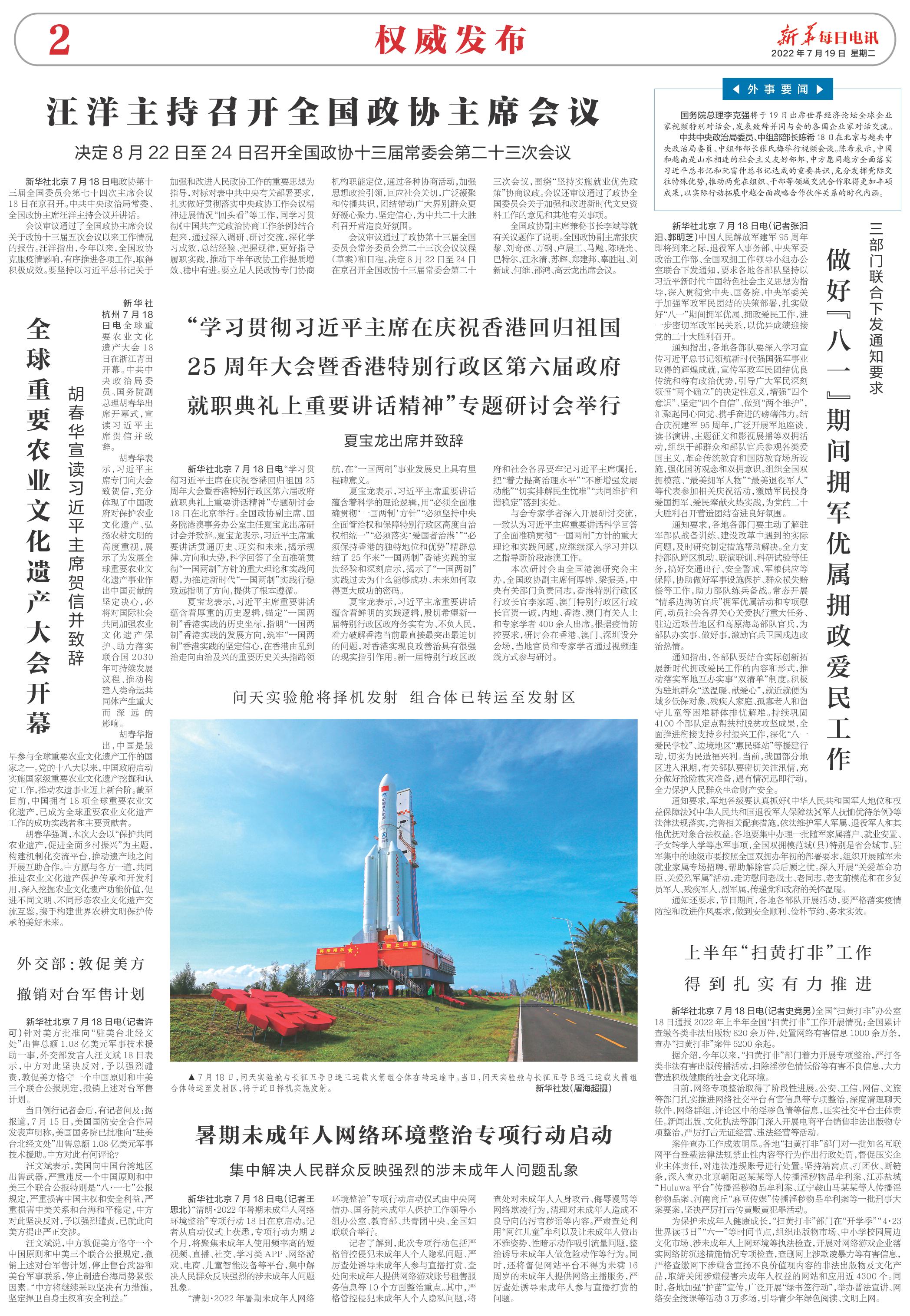 | ( 2022-07-19 ) 稿件来源:新华每日电讯 权威发布 |