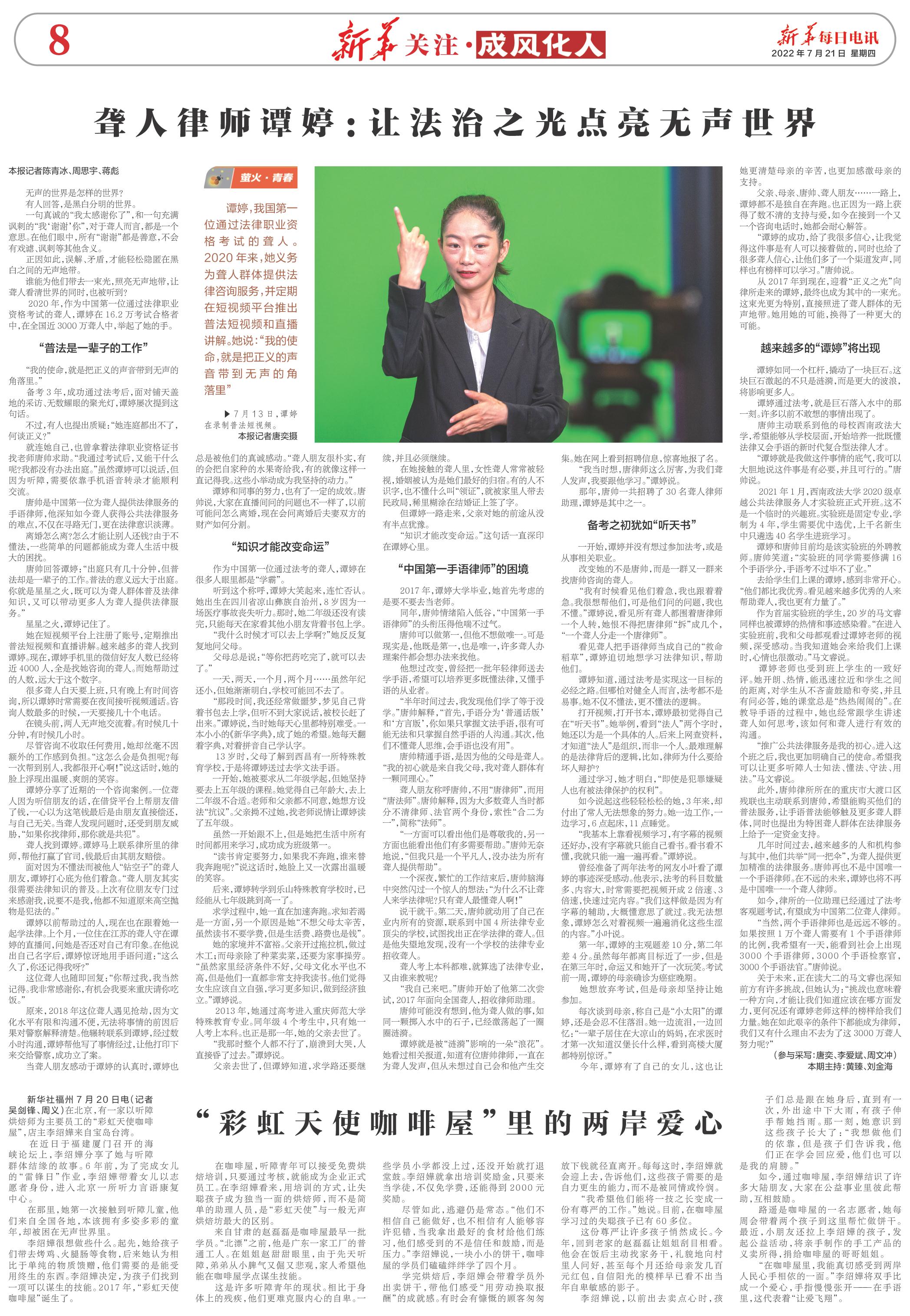 面对因为不懂法而被他人“钻空子”的聋人朋友,谭婷打心底为他们着急。“聋人朋友其实很需要法律知识的普及。上次有位朋友专门过来感谢我,说要不是我,他都不知道原来高空抛物是犯法的。”
