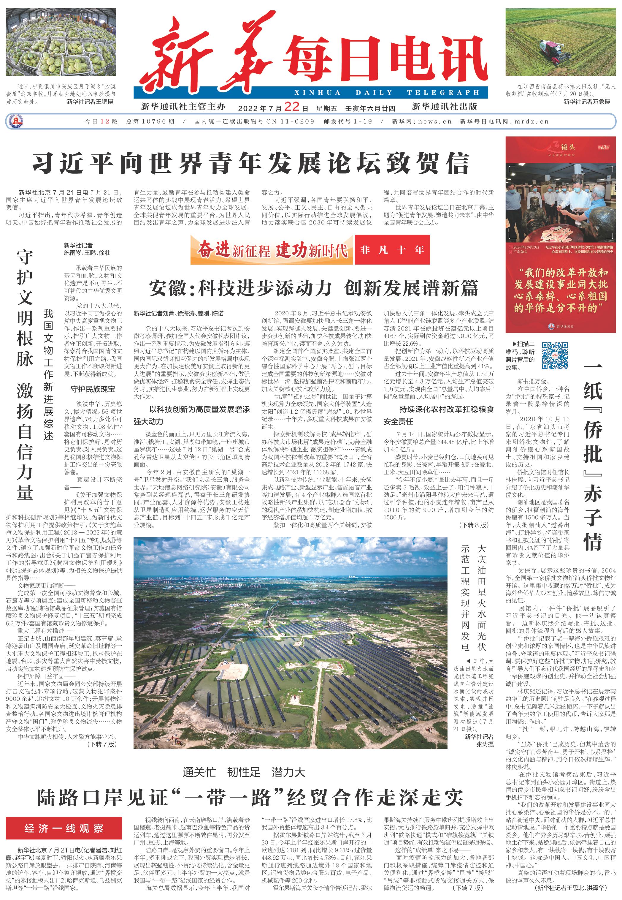 | ( 2022-07-22 ) 稿件来源:新华每日电讯 要 闻 |