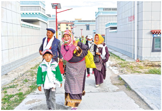 ▲刚刚抵达森布日安置点的双湖县牧民正前往新家(7月19日摄)。为破解人与自然和谐共生难题,筑牢国家生态安全屏障,西藏自治区于2019年开展双湖县高海拔生态搬迁。7月19日,第二批生态搬迁牧民从平均海拔5000米的双湖县出发,迁往雅鲁藏布江畔的森布日安置点,在新家园开启新生活。 新华社记者张汝锋摄