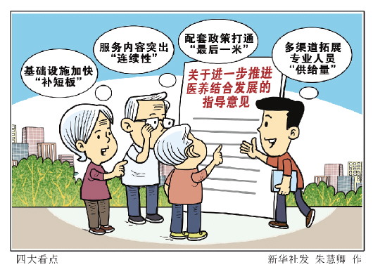 “指导意见提出了加强人才培训、引导医务人员从事医养结合服务、壮大失能照护服务队伍三项重点任务。”国家卫生健康委卫生发展研究中心研究员郝晓宁说,这是推动人才队伍提量提质的一揽子措施,有望吸引更多人才参与到医养结合服务中。
