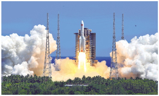 ▲7月24日,搭载问天实验舱的长征五号B遥三运载火箭,在文昌航天发射场点火发射。