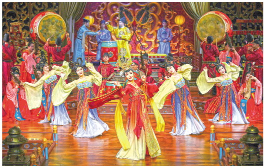 2006年,东仓鼓乐社入驻大唐芙蓉园紫云楼开始固定演出。千年之后,这个来自唐代宫廷的音律,再次回到了当年著名的皇家园林所在地,大唐遗音响彻园内。