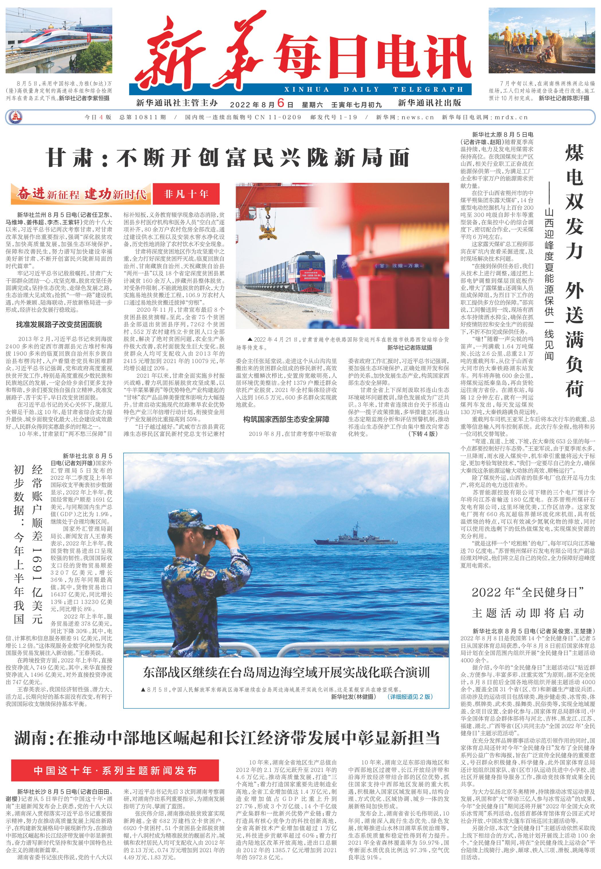 | ( 2022-08-06 ) 稿件来源:新华每日电讯 要 闻 |