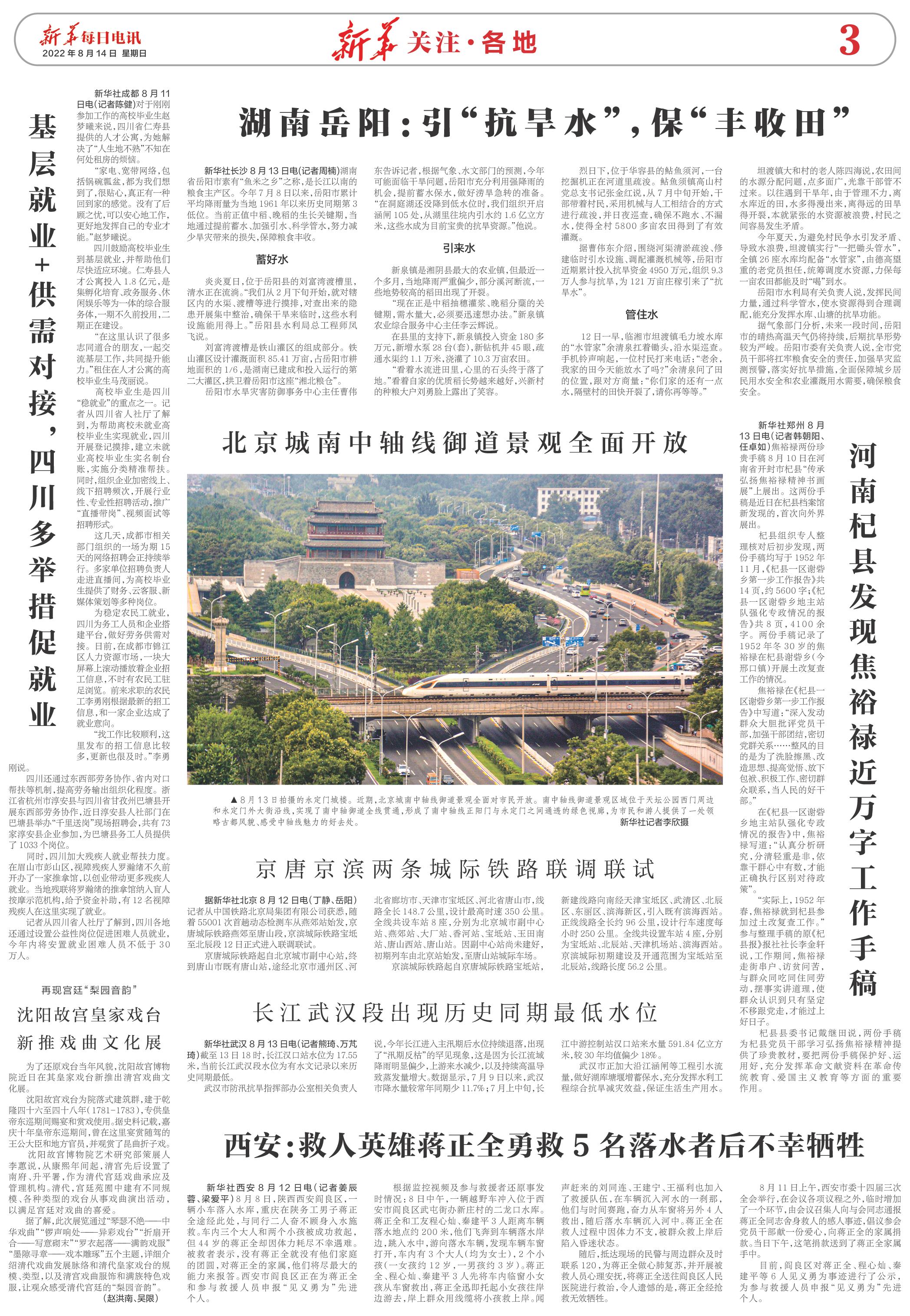 | ( 2022-08-14 ) 稿件来源:新华每日电讯 新华关注·各地 |