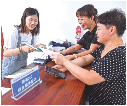 8月17日,杭州市临安区玲珑街道东山社区的居民在社区的便民服务中心咨询社保事项。