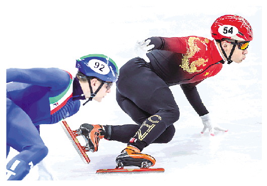 ▲2月5日,在北京冬奥会短道速滑混合团体接力决赛中,中国队夺得冠军。这是任子威(右)在比赛中。