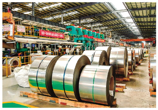 福建宁德市福安青拓冷轧科技有限公司生产车间(八月十七日摄)。 新华社记者魏培全摄 |