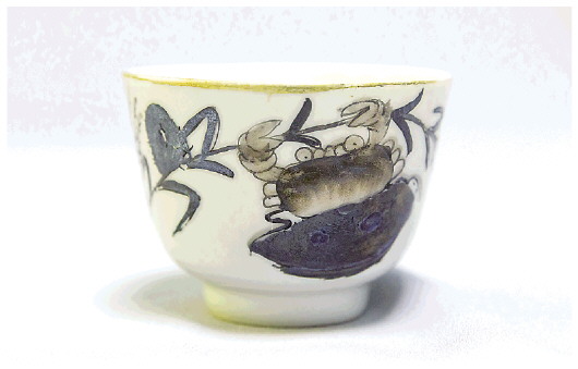 八月二十三日拍摄的长江口二号古船出水的“二甲传胪图”杯。 新华社记者王翔摄 |