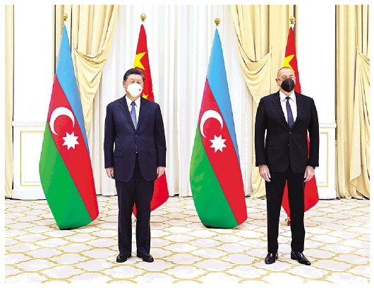 阿利耶夫表示,阿中是真正的战略伙伴,双方在国际事务中保持密切沟通,双边合作稳步推进。感谢中方向阿方提供新冠肺炎疫苗,这充分体现了中方一贯提倡的同舟共济精神。阿方愿以阿中建交30周年为契机,深化两国各领域务实合作。阿方坚持一个中国政策,坚定支持中方维护国家主权、安全和领土完整,坚决反对任何干涉中国内政、分裂中国的行径,坚定支持中方维护自身核心利益。阿方支持中方提出的全球安全倡议和全球发展倡议,愿同中方积极共建“一带一路”。