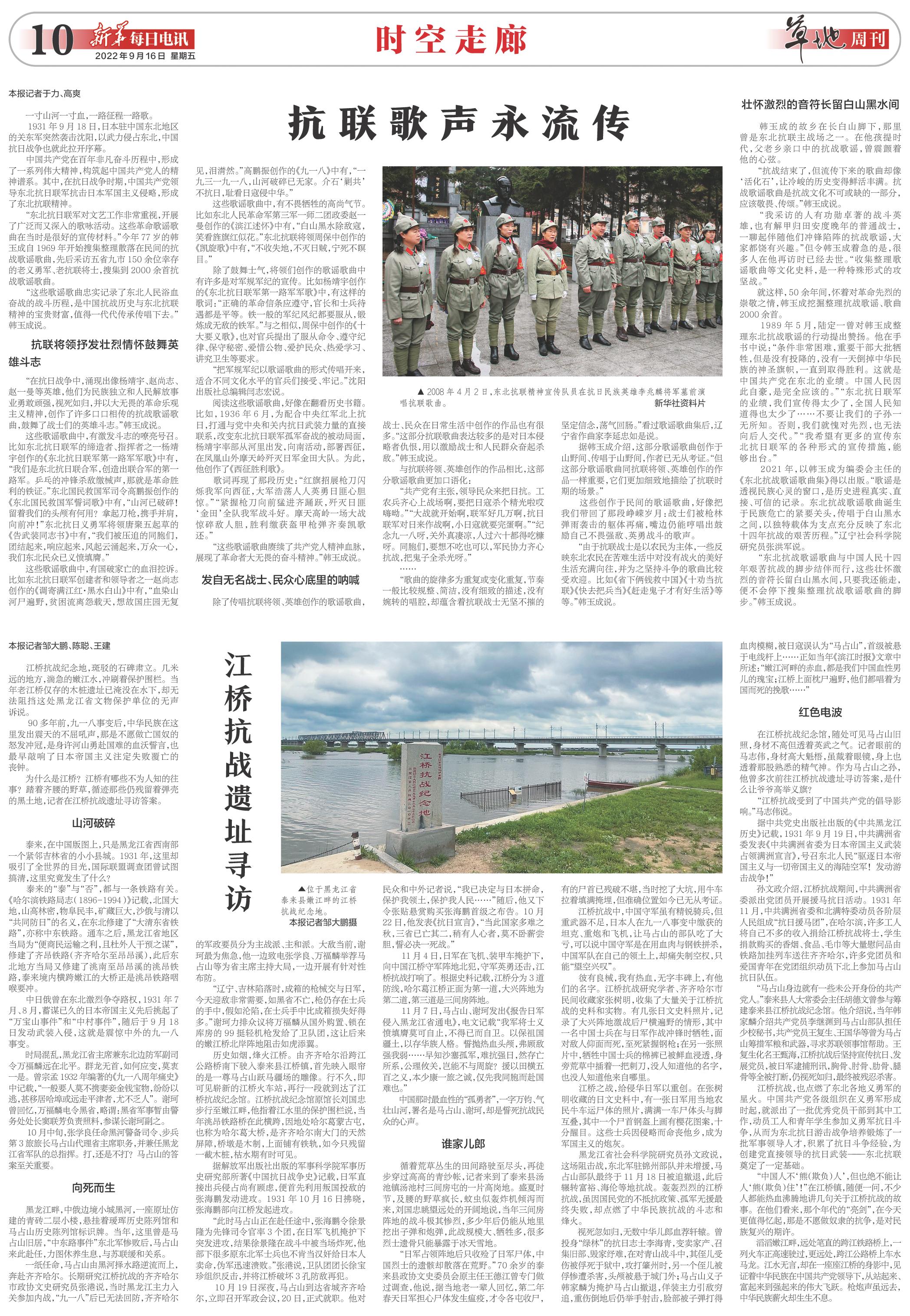 “在抗日战争中,涌现出像杨靖宇、赵尚志、赵一曼等英雄,他们为民族独立和人民解放事业勇敢顽强,视死如归,并以大无畏的革命乐观主义精神,创作了许多口口相传的抗战歌谣歌曲,鼓舞了战士们的英雄斗志。”韩玉成说。