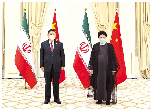 习近平强调,中方支持伊方维护国家主权和民族尊严,愿同伊方一道,维护不干涉内政原则,维护发展中国家共同利益。双方应积极落实两国全面合作计划,积极开展共建“一带一路”合作,打造更多合作成果。欢迎伊方参与全球发展倡议和全球安全倡议。中方祝贺伊方即将成为上海合作组织正式成员,愿在上合组织框架内加强协调和合作。中方将继续建设性参与伊朗核问题全面协议恢复履约谈判,支持伊方维护正当合法权益。
