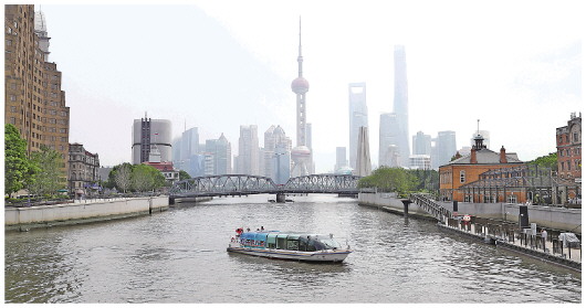 9月17日,一艘观光船航行在苏州河外滩源码头水域。当日,三艘“时空之梭”电动旅游观光船从位于苏州河畔的上海长风公园码头启航,开启苏州河旅游水上航线试运营。苏州河旅游水上航线途经上海普陀、长宁、静安、虹口和黄浦五个区,全长约17公里,目前已建成和正在建设的靠泊码头共有8个,将来市民游客可根据需要自由选择始发码头制定旅游路线。 新华社记者方喆摄
