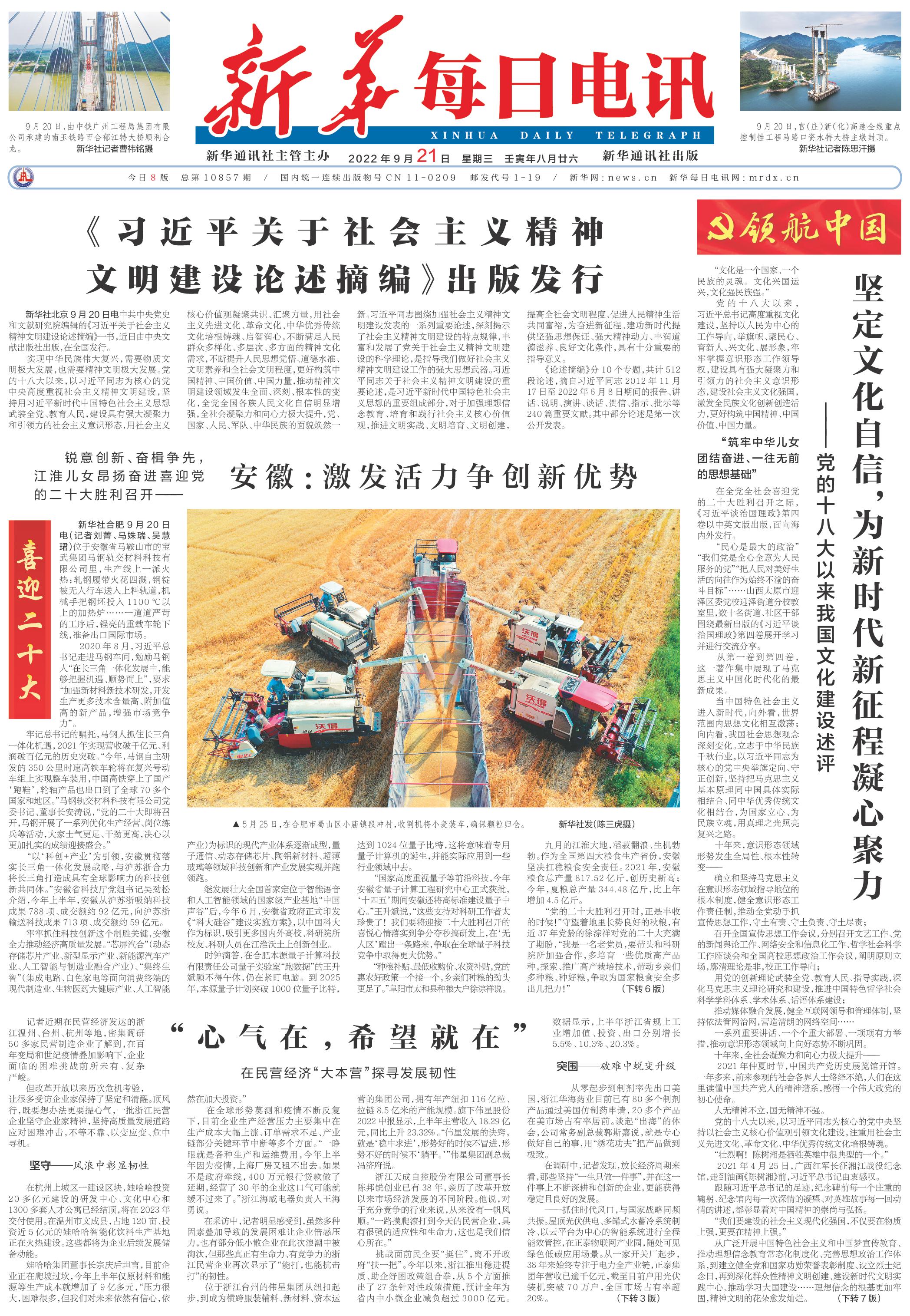 | ( 2022-09-21 ) 稿件来源:新华每日电讯 要 闻 |