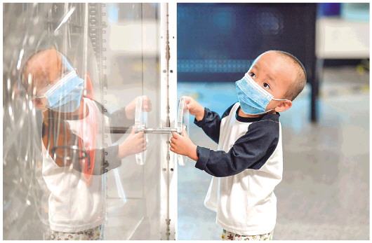 走进江西省首家国家安全教育示范点——南昌市红谷滩区红角洲管理处一个社区,小朋友们正在玩一款VR红色宣教小游戏。