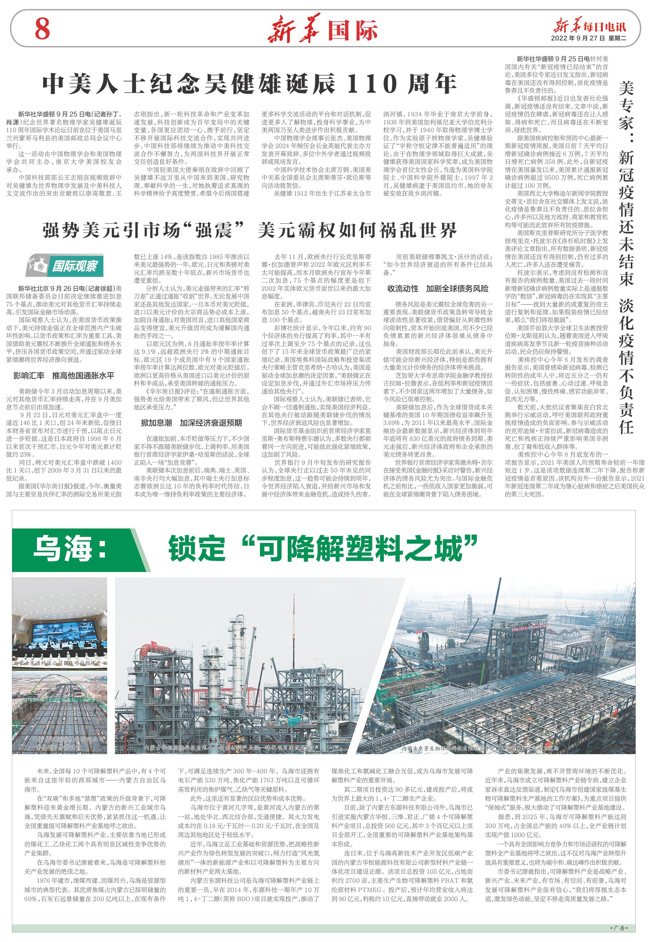 | ( 2022-09-27 ) 稿件来源:新华每日电讯 新华国际 |