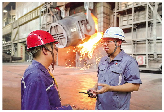 他表示,从原料变成优质钢水需经过多道工艺淬炼,要成长为新时代的优秀钢铁青年,同样要淬炼过硬本领;要不断坚持往炼钢炉里加“创新料”,不断突破“卡脖子”技术难题,以钢铁报国之志扛起建设钢铁强国重任。