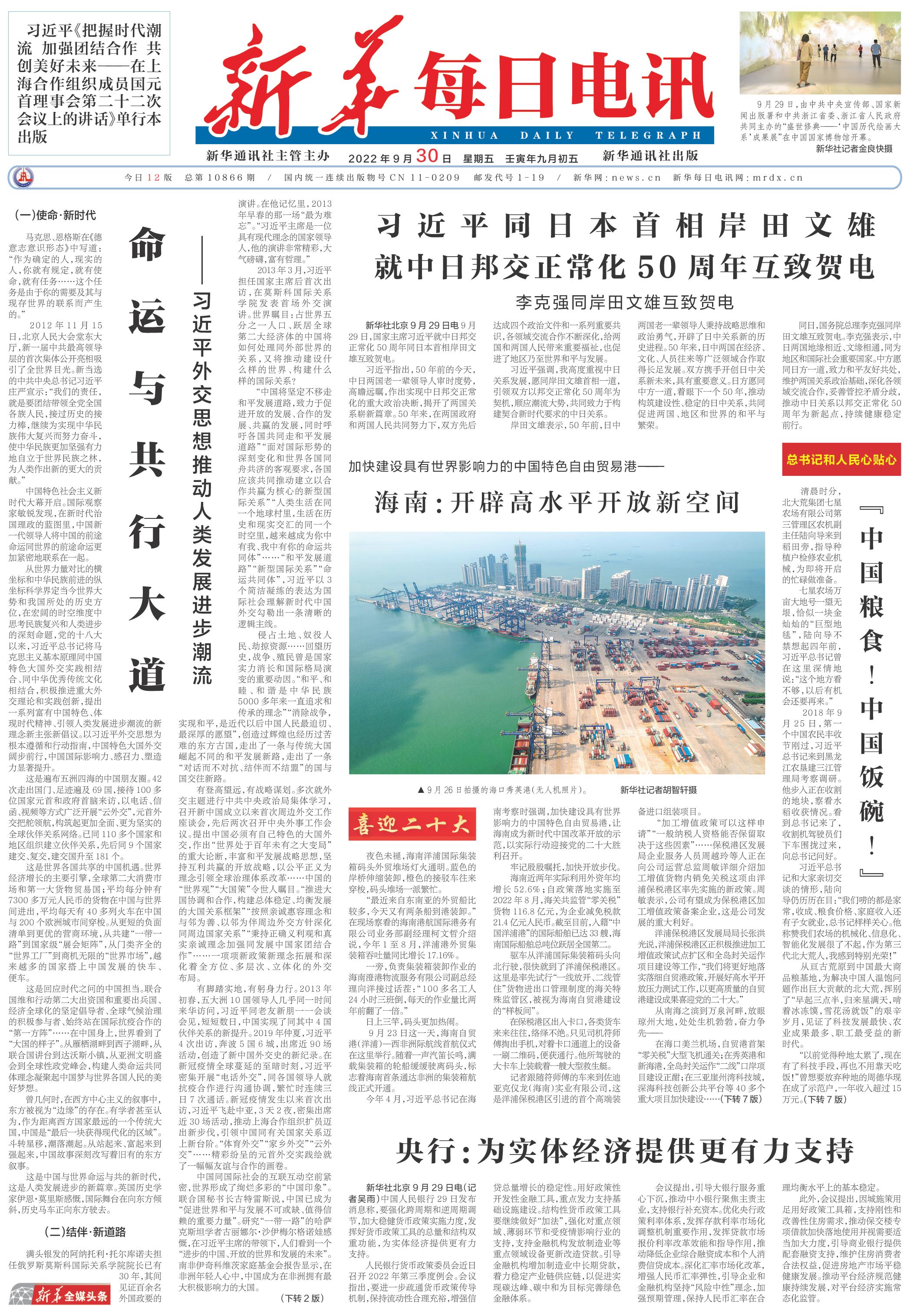| ( 2022-09-30 ) 稿件来源:新华每日电讯 要 闻 |