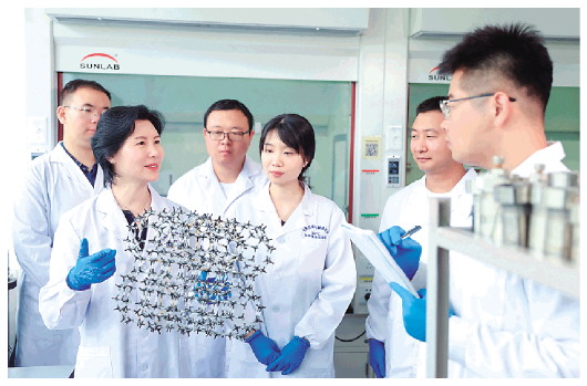 “这是我们研发的全新柔性固态锂空气电池,只有0.33毫米厚,可以随意弯折,在柔性电子产品中具有重要应用前景。”于吉红手拿一张“纸片”,向记者展示。2021年,她带领团队首次开发出一种基于分子筛薄膜的全新固态电解质材料,该成果发表在《自然》期刊上,有力推动我国在固态金属空气电池领域的进步。