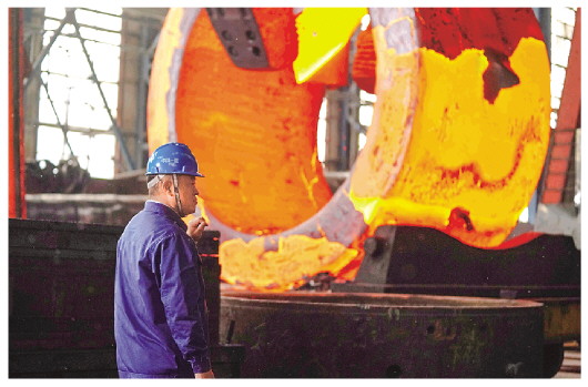 记者日前走进中国一重水压机锻造厂的厂房采访,刘伯鸣正在指挥操作手通过水压机把烫得发红的巨大钢锭塑成轴、辊、筒等各类锻件,这些锻件将被应用到核电、石油、化工等重大国计民生领域。水压机每一次锻压的时间、强度、角度,都分毫不差。