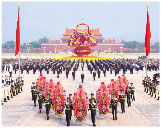 新华社北京9月30日电天地英雄气,千秋尚凛然。烈士纪念日向人民英雄敬献花篮仪式30日上午在北京天安门广场隆重举行。党和国家领导人习近平、李克强、栗战书、汪洋、王沪宁、赵乐际、韩正、王岐山等,同各界代表一起出席仪式。